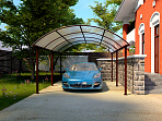 Навес для автомобиля «Гало» - вариант экономии пространства на загородном участке и одновременно надежное укрытие транспорта от мусора и непогоды.